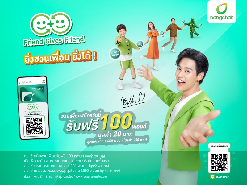 สมาชิกบางจากกรีนไมลส์เพียงแนะนำเพื่อนใหม่มาสมัครสมาชิก